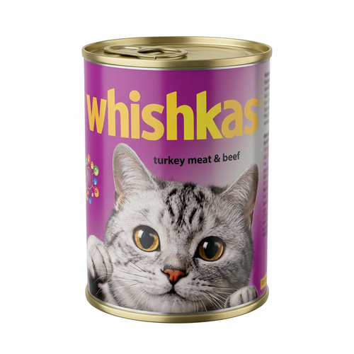 یکی دیگر از انواع کنسرو های غذای گربه مدل گوشت گوساله و بوقلمون ویشکاس می باشد که در این کنسرو نیز از سبزیجات معطر، هویج، کدو و امگا 3 استفاده شده است.